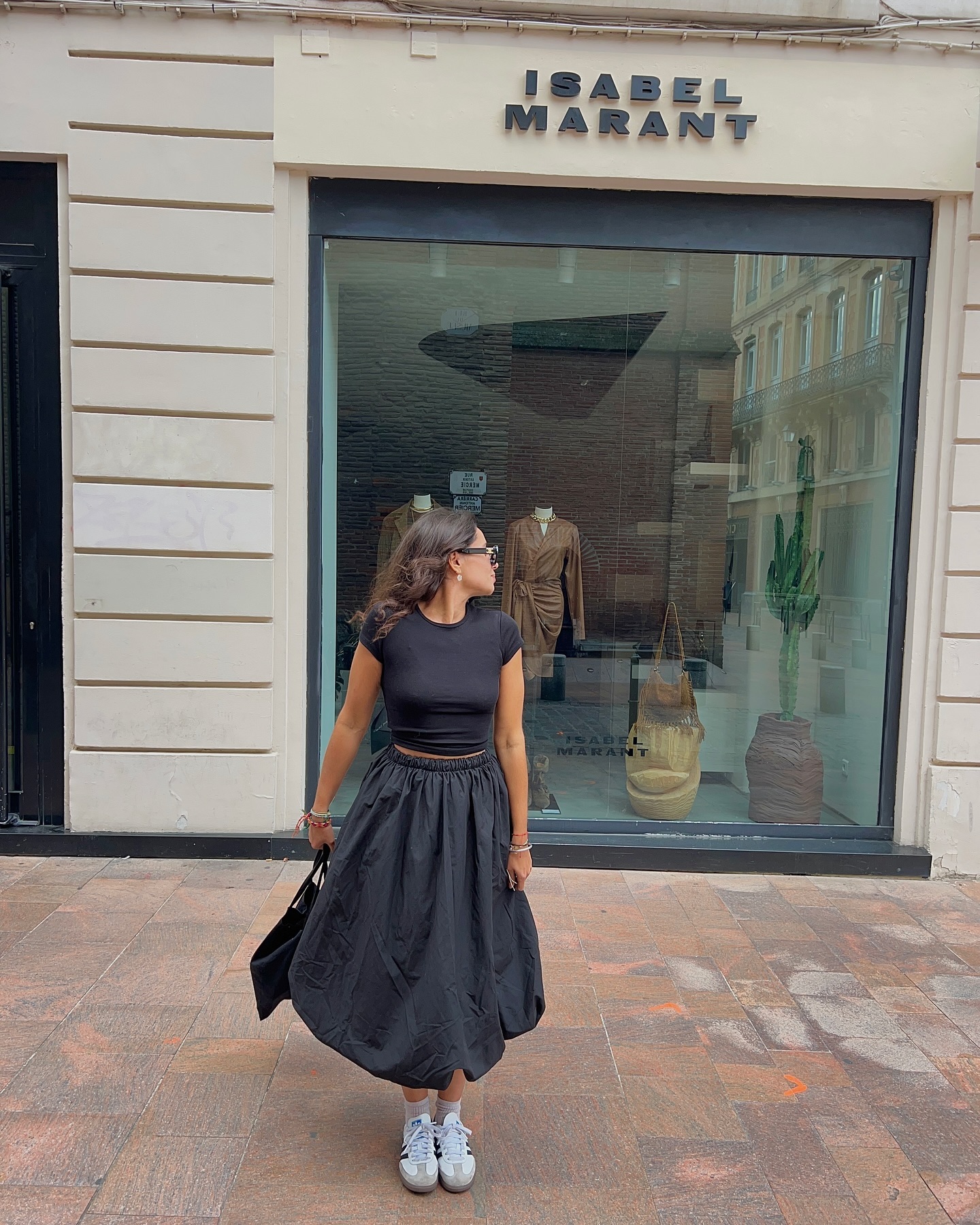 Overall, this look was all about comfort, practicality, and a touch of elegance. From the perfect black tee to the sleek cycling shoes, every element of the outfit was designed for a relaxed yet stylish shopping day. It’s the kind of ensemble that lets me move freely while still looking put together—a must for any successful shopping trip!